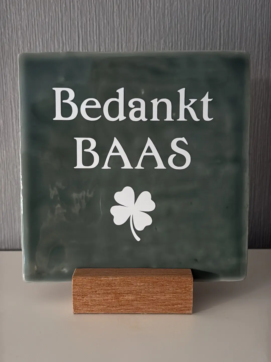 Op zoek naar een origineel cadeau voor jouw baas? Laat een tegeltje bedrukken met een gepersonaliseerde spreuk of kies voor een algemene tekst! Daar ga je hem of haar zeker mee verrassen. De tegel is in verschillende kleuren te bestellen. De kleuren tegels kun je vinden onder het kopje werkwijze.